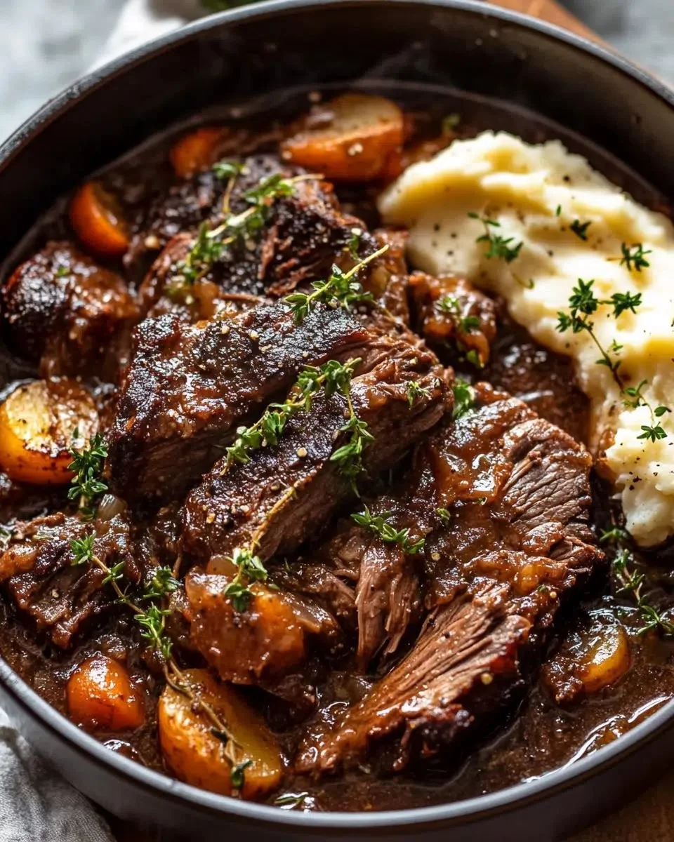 Shred the roast into the juices and let it soak up all that flavor. If you want the gravy thicker, whisk together a little cornstarch and water, then stir it in until it reaches your perfect consistency.